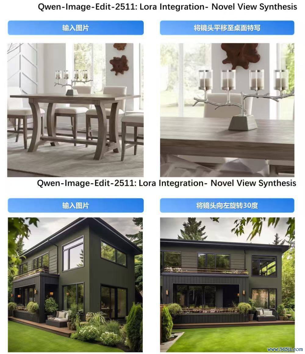 三、内置LoRA模子增强实用性,障翳光照、视角与工业材质替换在Qwen-Image-Edit-2511中,官方初次将部分社区高频使用的LoRA子模子平直内置于基础模子中,用户无需加载终点权重即可调用对应才智。这一机制权贵缩小了LoRA功能的使用门槛,也晋升了模子在专科利用场景下的实用性。